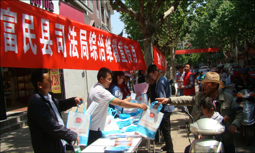 富民县司法局结合法制宣传、法律保障和法律服务三大职能,紧扣法治富民平安富民建设的深入推进,围绕“平安建设、法治建设、队伍建设”的主题,组织法制宣传科、社区矫正科、云南勇旭律师事务所等6名干警、律师在活动现场设立了宣传点和法律咨询点,向赶集群众和过往中小学生讲解法律知识、解答法律问题,发送“六五”普法依法治县与法治富民建设宣传资料和与群众、中小学生生活学习密切相关法律法规,倡导全民进一步深化法治思维和法律意识,积极学法尊法守法用法,切实参与法治富民建设,共建和谐美丽新富民。