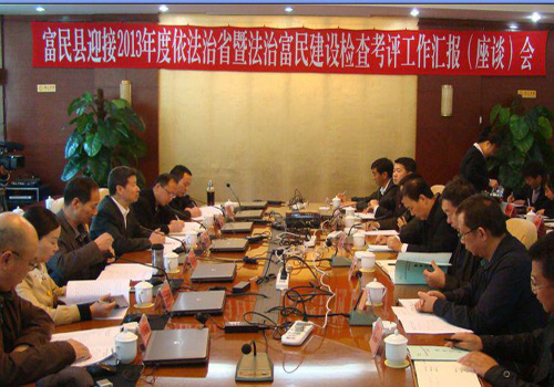 2014年3月25日,富民县代表昆明市接受云南省依法治省检查考评组检查考评昆明市2013年度法治县(市)区建设工作。省依法治省检查考评组一行3人由省司法厅法律援助工作管理局副调研员蒲顺根同志带队,市司法局副局长赵勇、市司法局法制宣传处处长呙晓滔等6位同志陪同,对富民县2013年度法治富民建设情况进行了检查考评。
