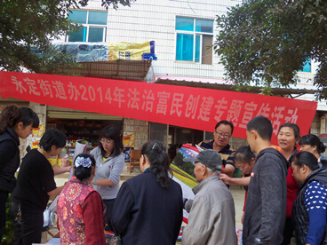 为深入贯彻落实党的十八大及十八届三中全会关于全面推进依法治国,建设法治中国的要求,进一步巩固富民县实际法治县创建成果,向群众宣传法律知识,弘扬法制精神,增强公民在法律面前一律平等观念,权利义务相一致观念,公平正义观念,牢固树立并自觉践行社会主义法治理念,推动依法治县和法治富民建设工作深入开展。2014年10月10日,永定街道办事处组织相关部门开展了2014年法治富民创建专题宣传活。![YQ1%]XJC]4Z[8[4$AP2MYAH YQ1%]XJC]4Z[8[4$AP2MYAH](/upload/resources/image/2014/10/11/30450.jpg)